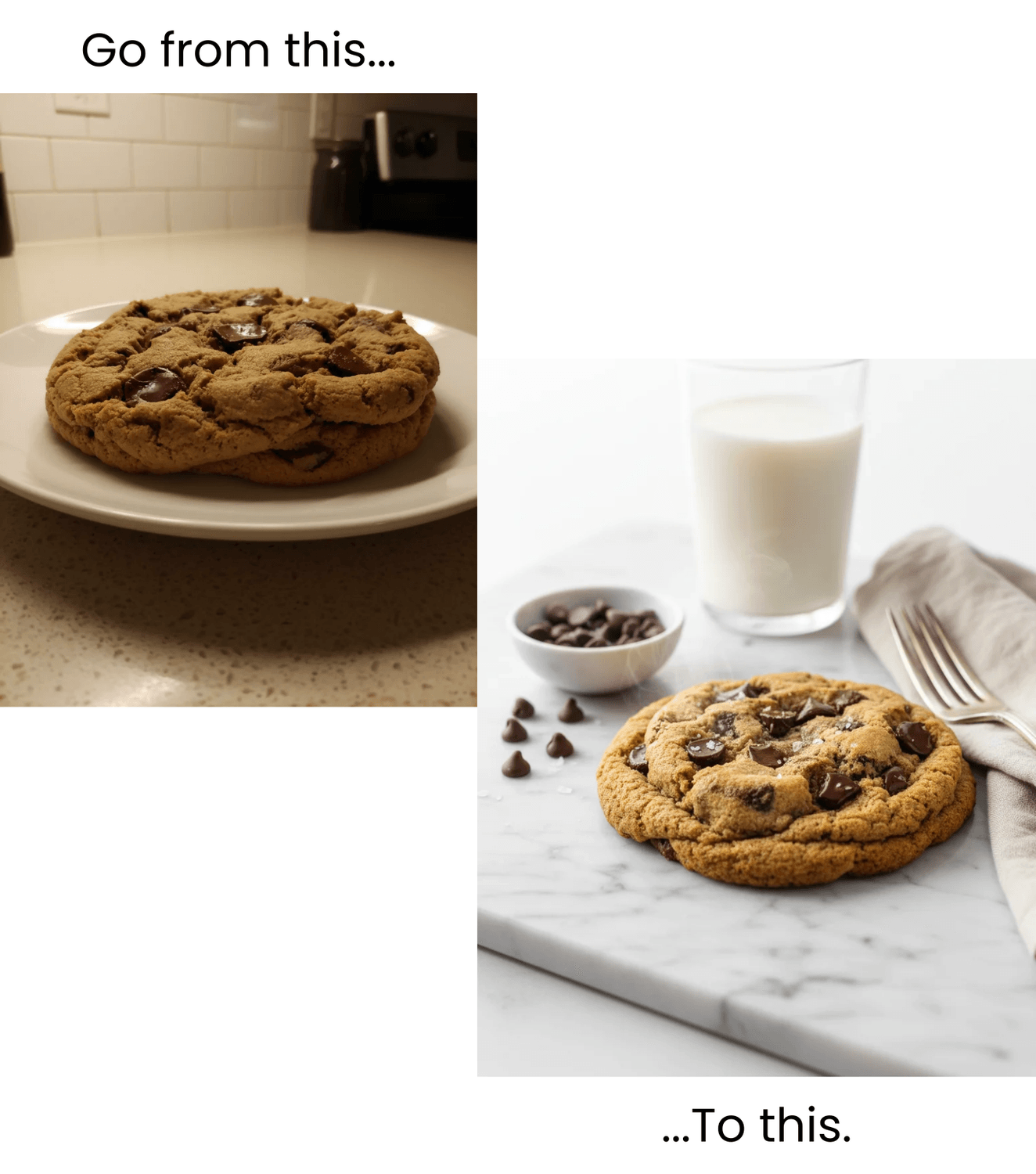 Stop letting the sun dictate your schedule — You shouldn't have to wait for the weekend to take a photo. Unlock the "Night Baker" lighting setup so you can bake at 8 PM and still get photos that look like they were shot in a sun-drenched professional studio.